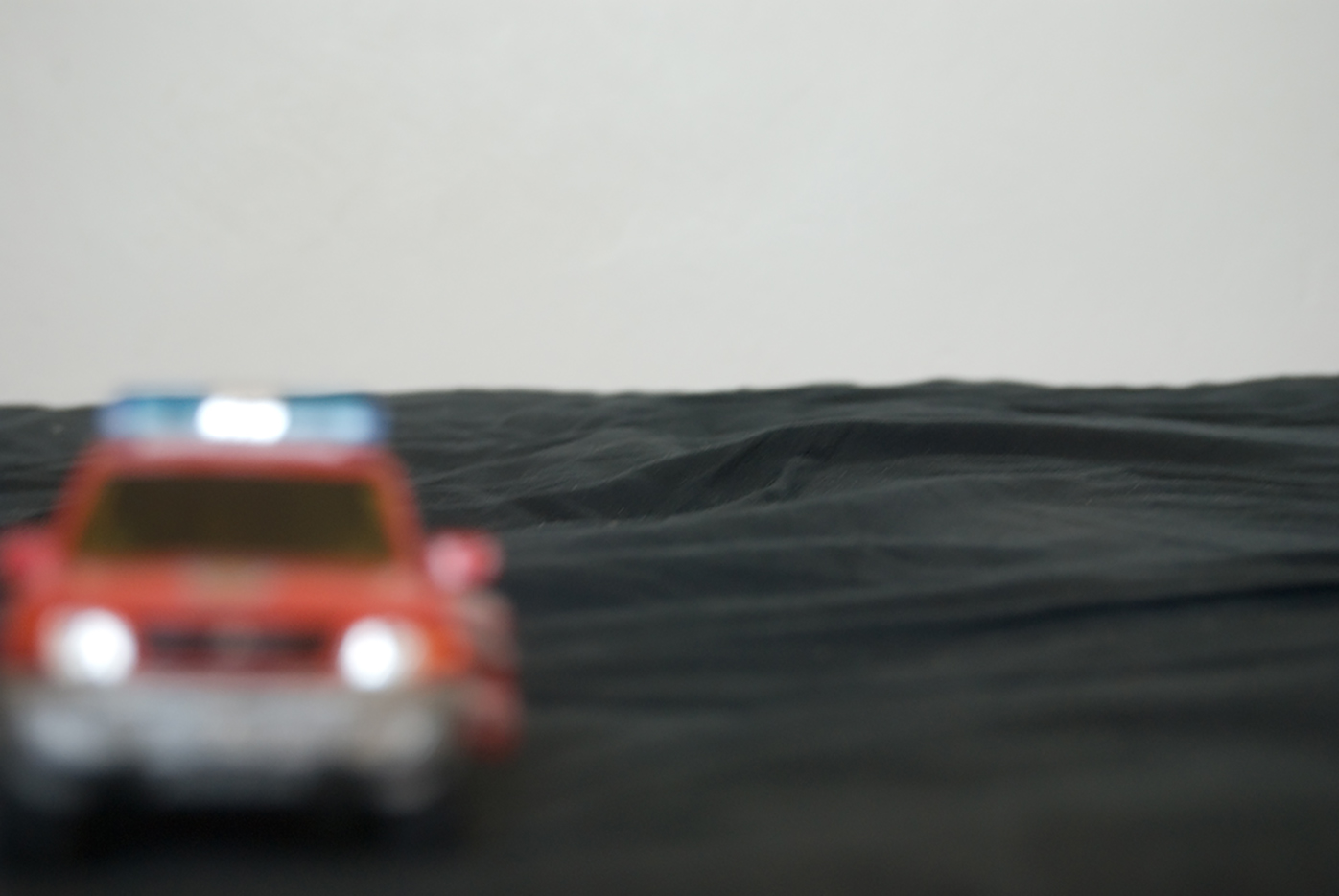 the miniaturised toy car with his finger on the LCD screen.