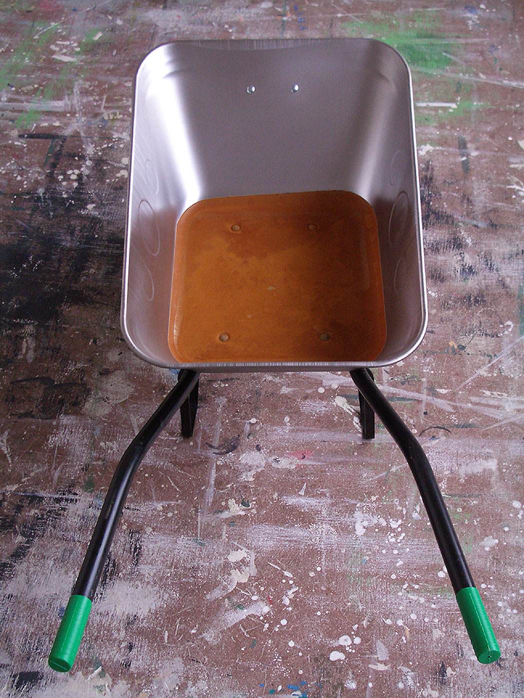a wheelbarrow with 4 cm of rust at the bottom